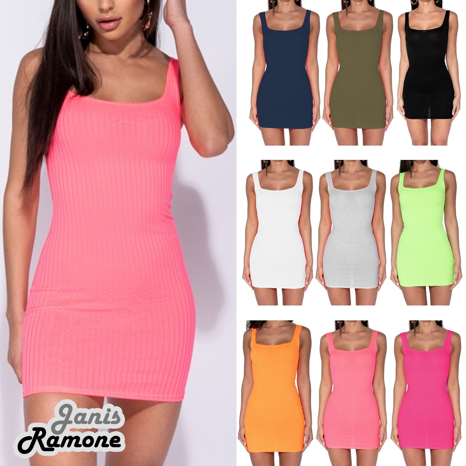 Womens Summer Ribbed Bodycon Mini Dresses Ladies Strappy Clubwear Party Dress Ebay