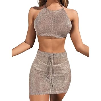 Amazon Com Makaor Women S Halter Tank Dress Sexy Ribbed Knit