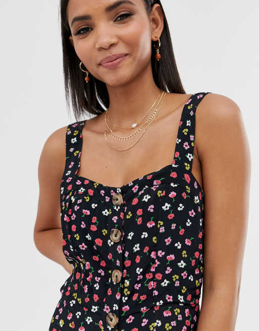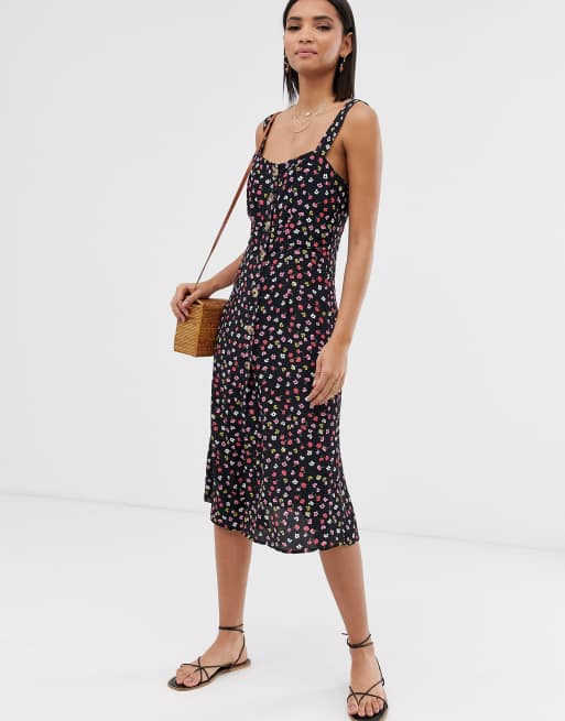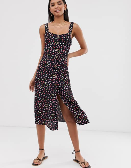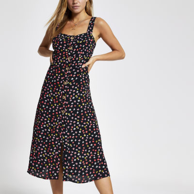 River Island Button Down Summer Dress In Black Ditsy Floral Asos