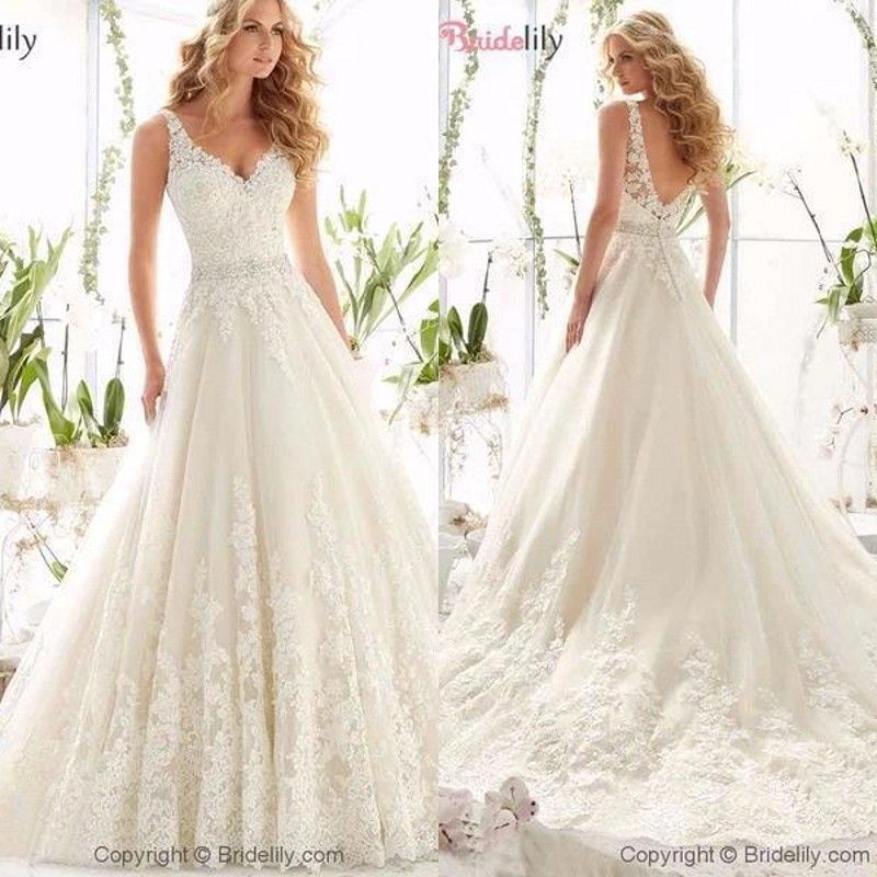V Neck Unique New Design Wedding Dresses Lovely Romantic Long
