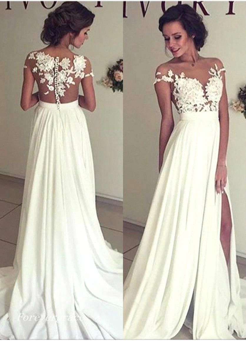 Discount Romantic Illusion Long Sleeves Wedding Dresses Split