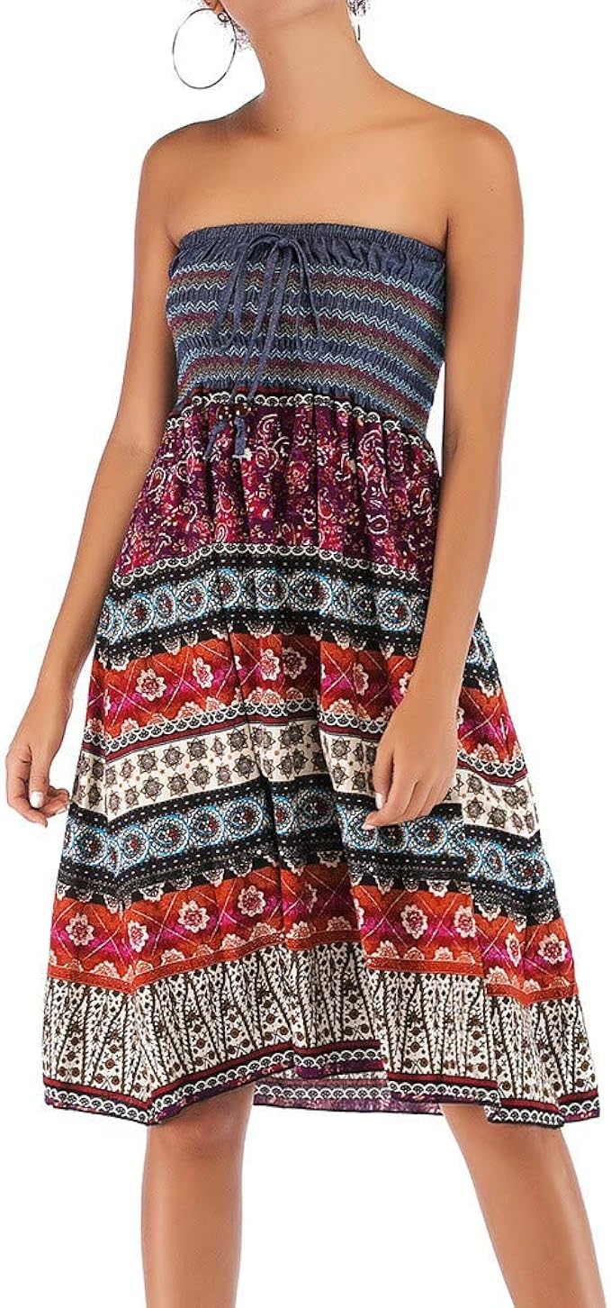 Amazon Com Sayhi Bohemia Big Swing Rose Red Bow Tie Bandeau Dress