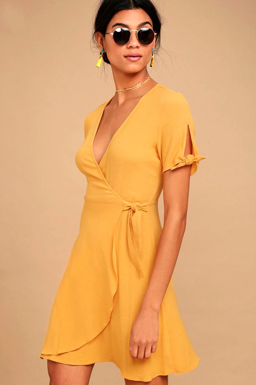 Cute Yellow Dress Wrap Dress Short Sleeve Dress