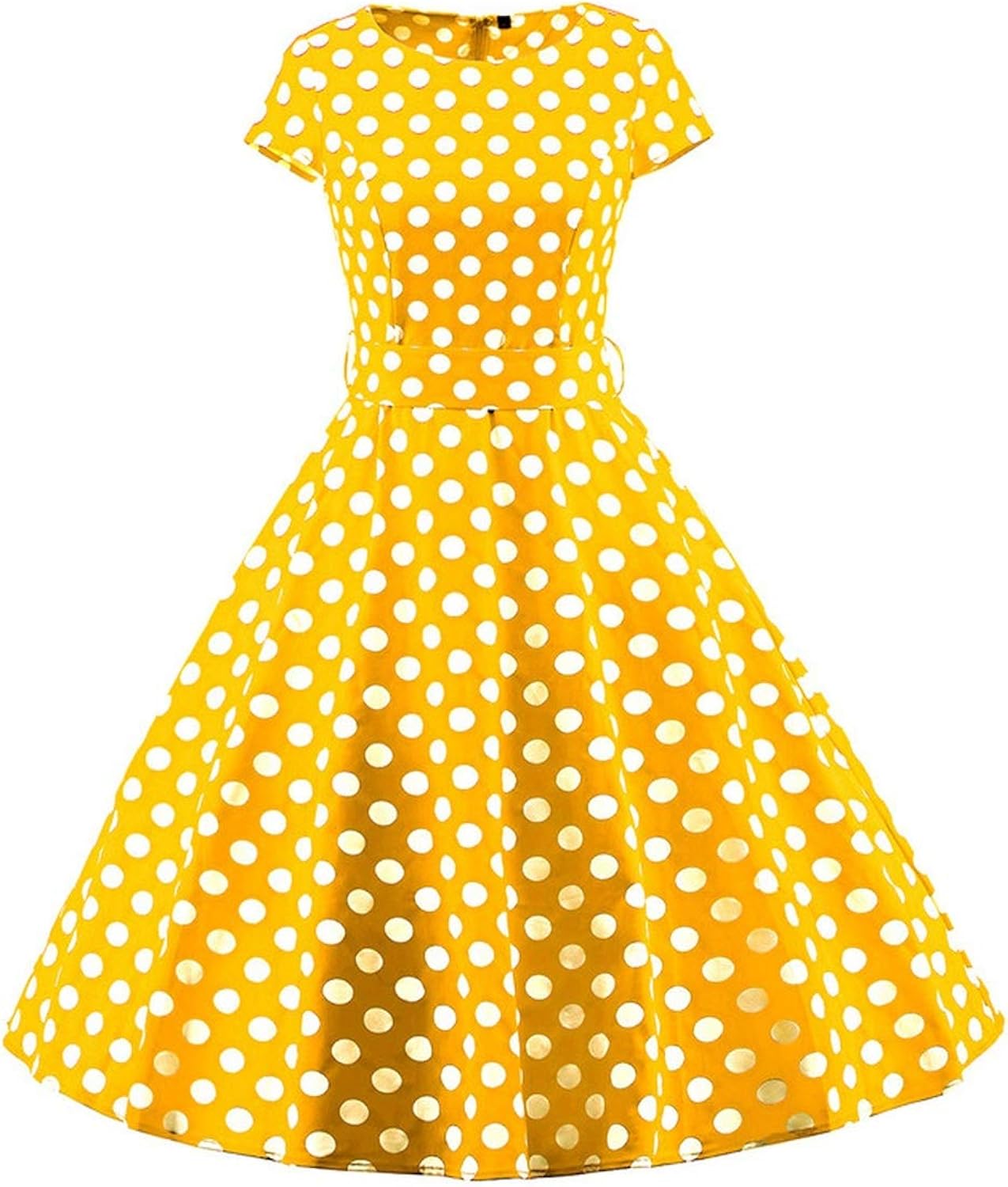 Dots Summer Dress O K Short Sleeve Yellow Color Mid Calf A Line