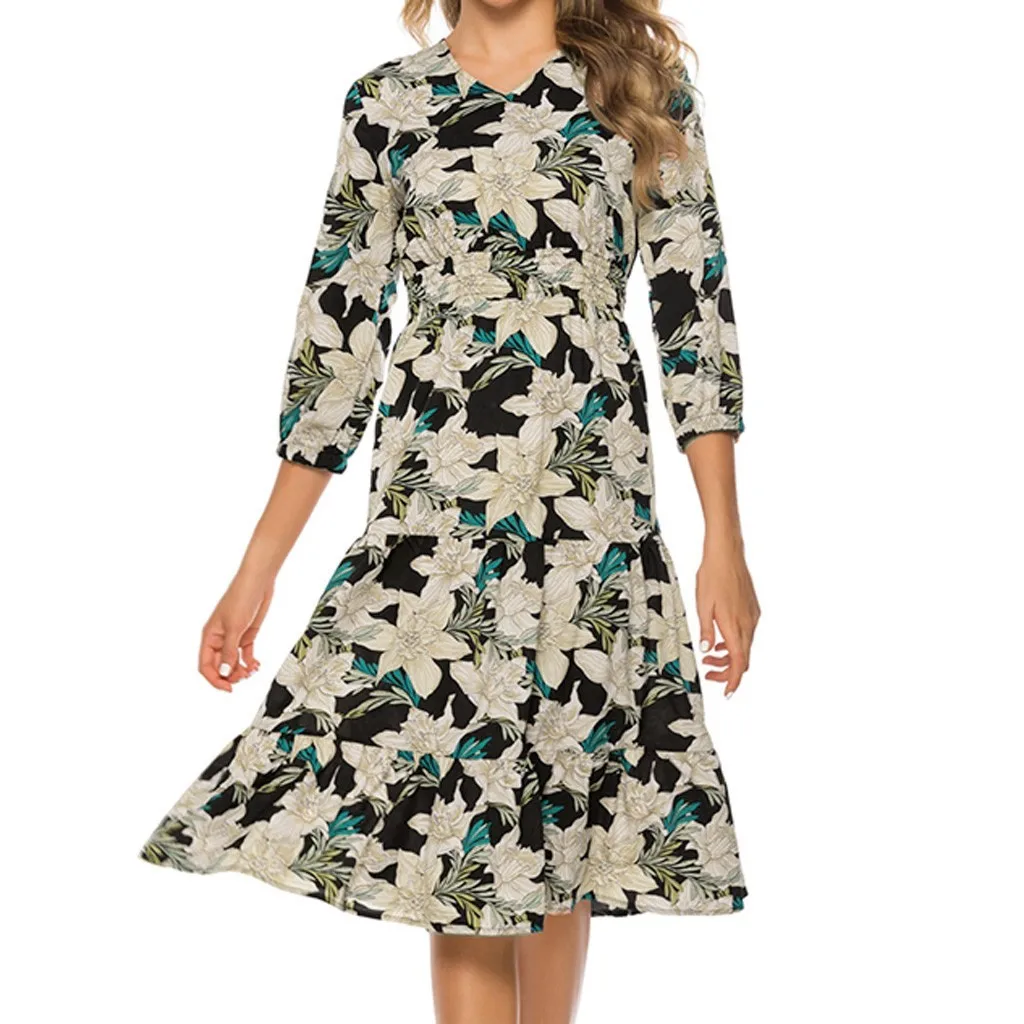 Simple Elegant Boho Floral Print Women Summer Dress Spaghetti