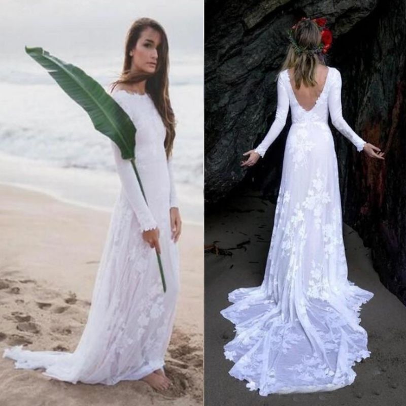 Simple Elegant Summer Beach Wedding Dresses Lace Long Sleeves Sexy