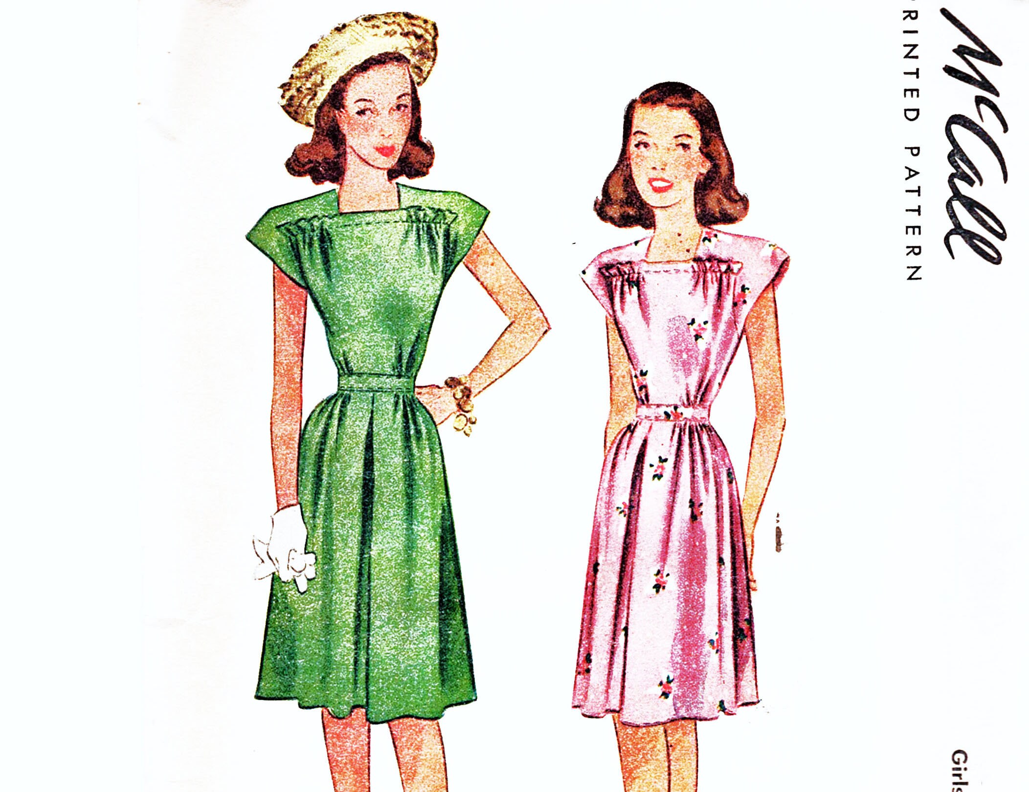 1940s Sewing Pattern Size 10 Girls Cap Sleeve Dress Simple To Etsy