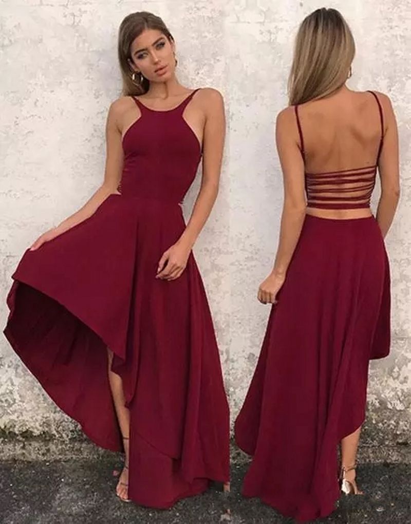 New Simple Summer Sexy Prom Dresses Asymmetrical Backles