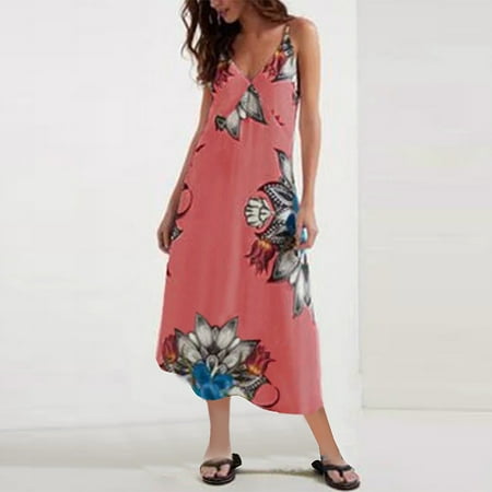 Zanzea Summer Women V Neck Sleeveless Sling Strap Long Dress