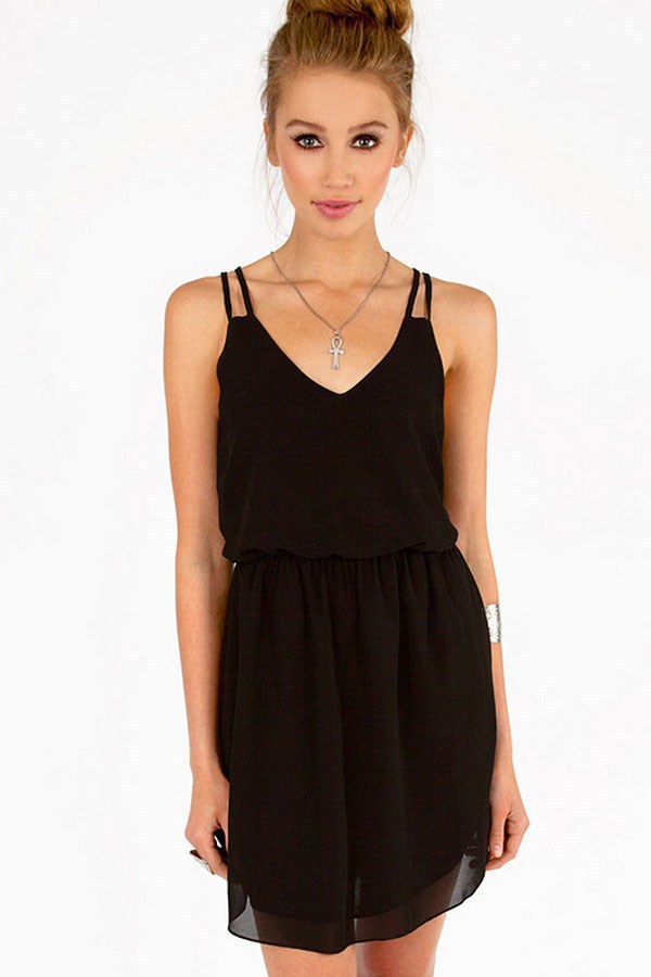 Black Brief Sexy Club Lower O Neck Spaghetti Strap Straight
