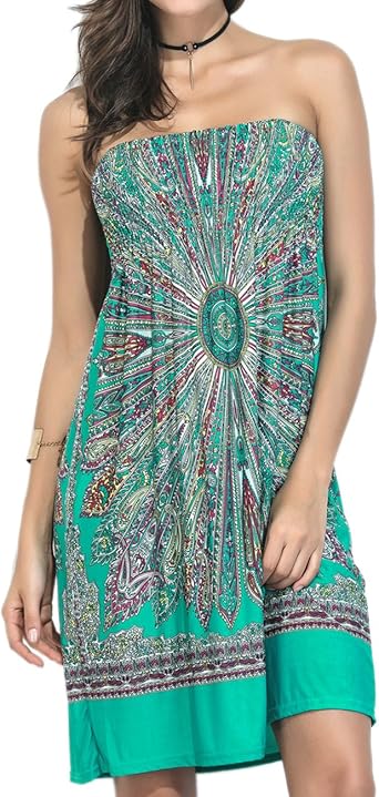 Sexyshine Womens Summer Strapless Floral Print Bohemian Vintage