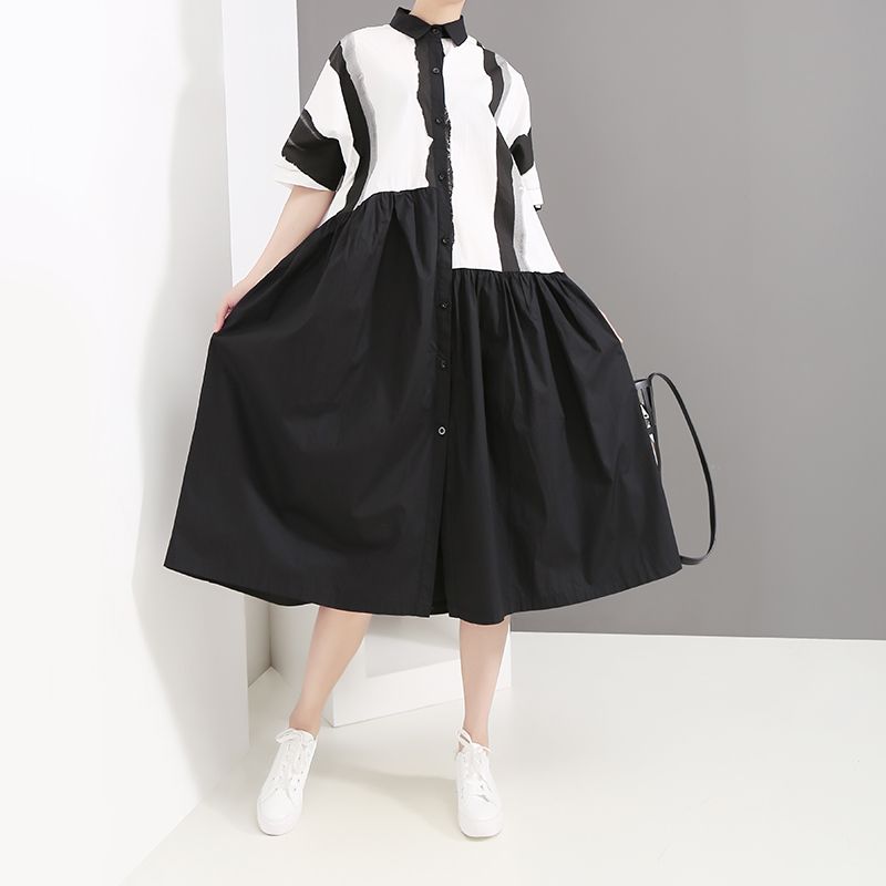 New 2019 Korean Style Women Summer Black Dress Patchwork Design