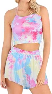 Amazon Com Women Bodycon 2 Piece Sets Gradient Printing Halter Top And Short Set Navel Exposed Sportswear Set For Girls Summer Bodycon Suit Two Piece Sports Outdoors
