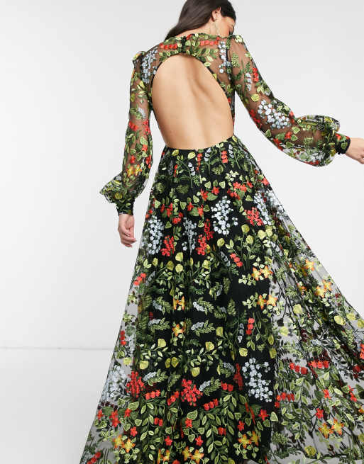 Asos Edition Summer Floral Embroidered Maxi Dress With Open Back