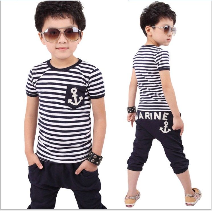 2020 Baby Boys Clothes Set 2018 Summer Navy Style Stripe Outfit
