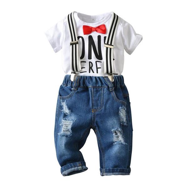 New Cute Gentleman Baby Boys Jeans Strap T Shirt Summer