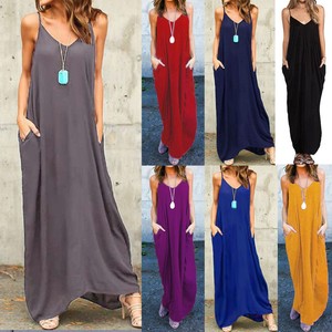 2019 Summer Women V Neck Maxi Dress Sleeveless Boho Beach Casual