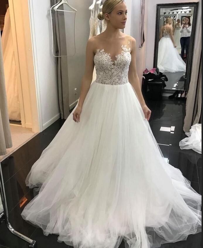 Discount 2020 New Backless Wedding Dresses Sheer Neck Summer