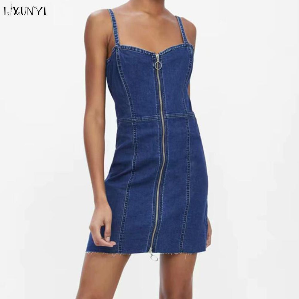 Lxunyi 2019 Women Summer Denim Dress Sleeveless Sexy Bodycon Short