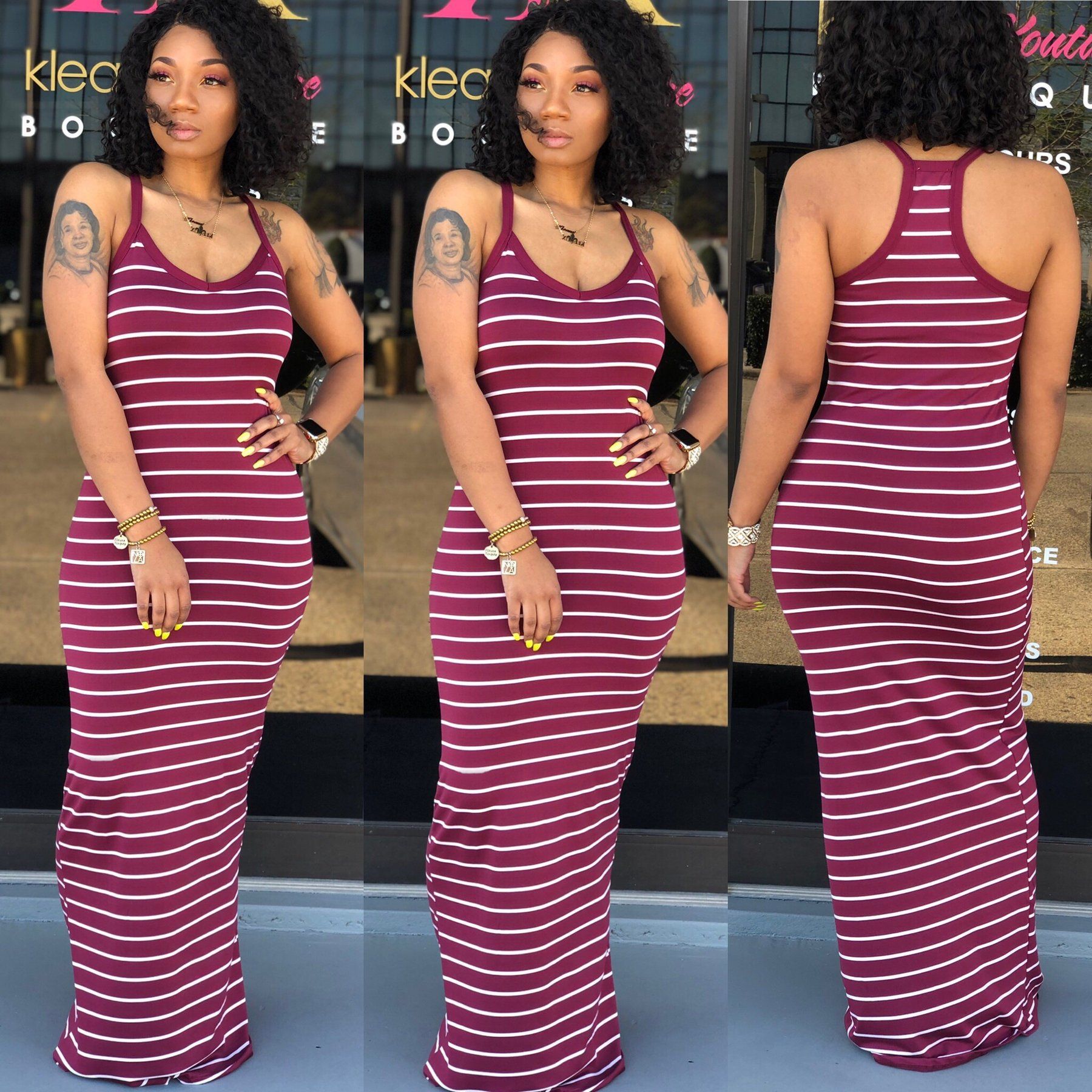 Hot Womens Casual Sexy Summer Stripe Bodycon Long Maxi Dresses