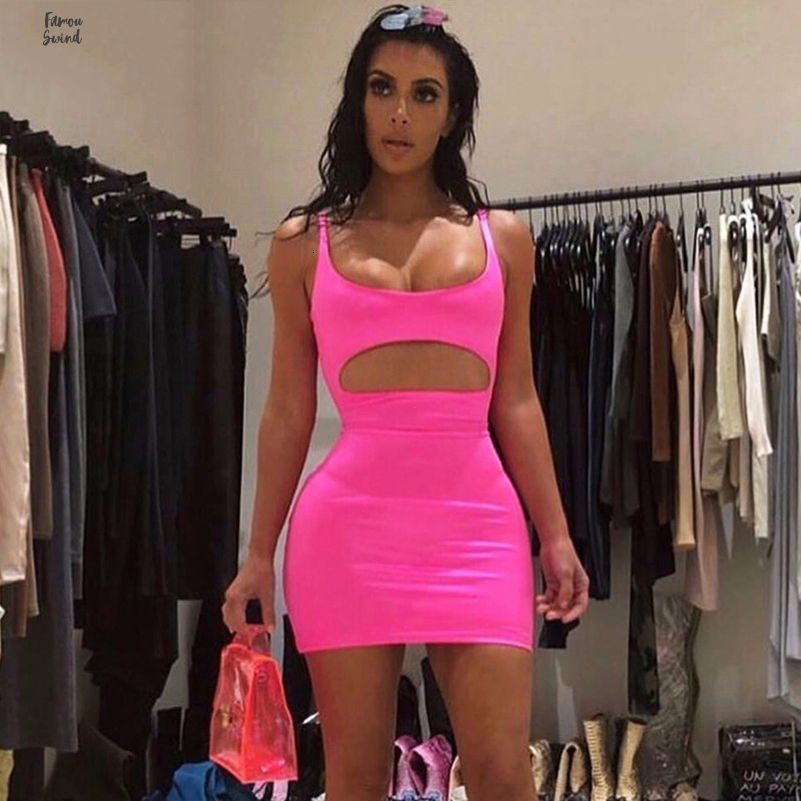 Summer Bodycon Mini Dress Dress Pink Kardashian Women Cut Out Sexy