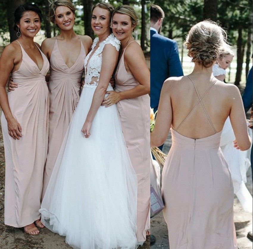 Pale Pink Chiffon Bridesmaids Dresses Summer Boho Beach Wedding