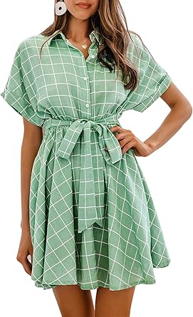 Fashiomo Women S Plaid Button Down Mini Dress Casual Belted Short