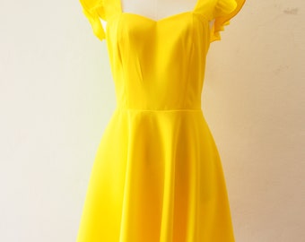 Take a peek at our collection of bright and cheery canary yellow bridesmaid dresses from azazie. Brighten up any day or room with a yellow dress women s yellow dress or juniors yellow dress at macy s. Womens summer ruffle sleeve sweetheart neckline printing dress mini dress. Inc off the shoulder floral print maxi dress created for macy s 99 00 sale 68 99 free ship at 25.