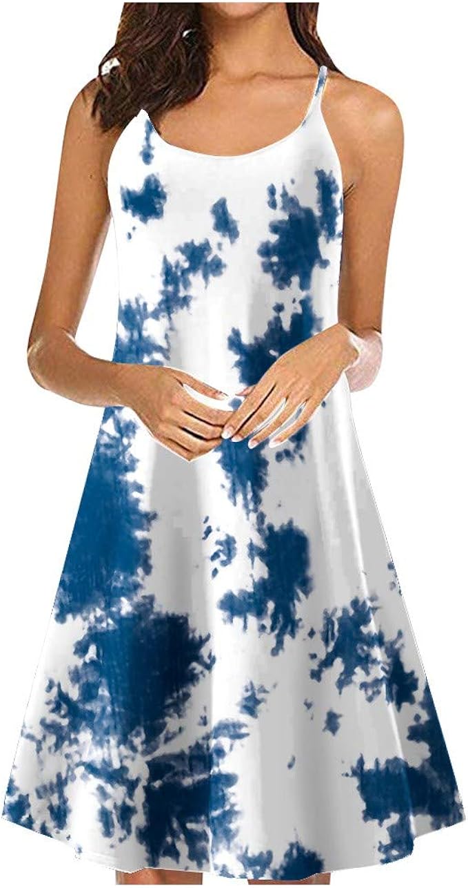 Houshelp Women S Summer Dress Spaghetti Strap Tie Dye Sundress
