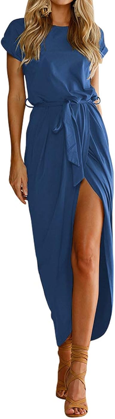 Fashion World Women Summer Short Sleeve Maxi Dress With Belt