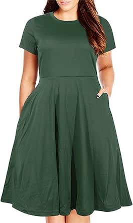 Amazon Com Nemidor Women S Round Neck Summer Casual Plus Size Fit And Flare Midi Dress Midi Dress Casual Midi Short Sleeve Dress Bridesmaid Dresses Plus Size