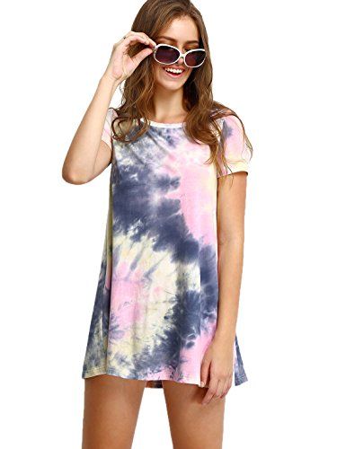 Womens Short Sleeve Summer Casual Tie Dye T Shirt Dress