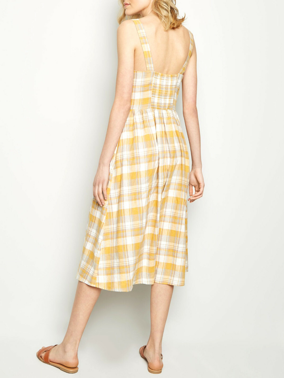 New Look Yellow White Check Linen Cotton Button Midi Summer