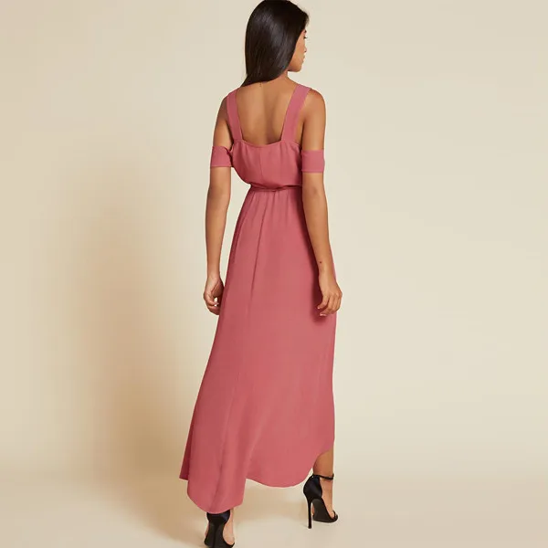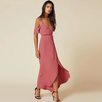 Summer Pink Color Long Bohemian Chiffon Women Dress Wc 59