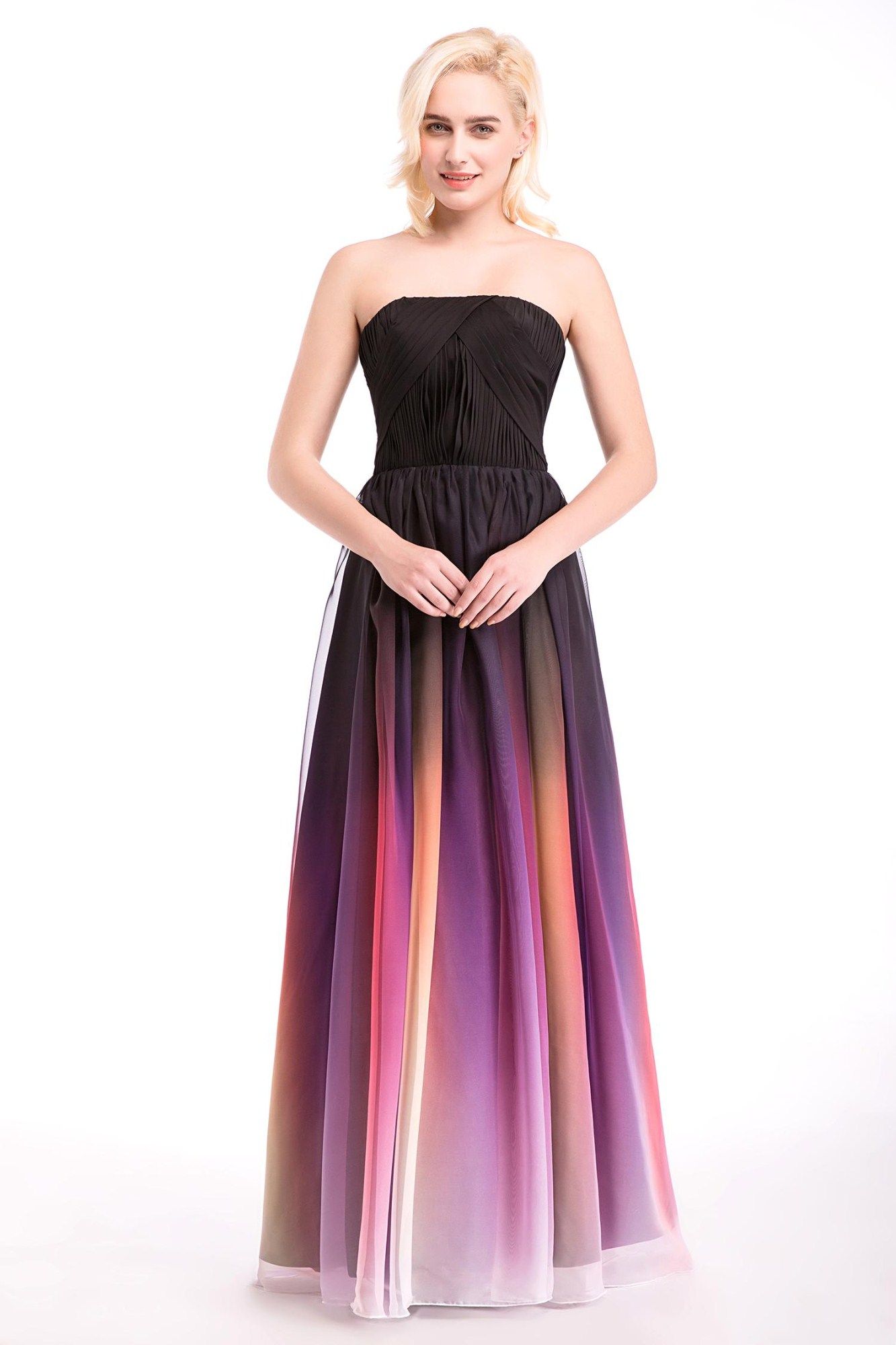 Floor Length A Line Strapless Floor Length Chiffon Prom Dress