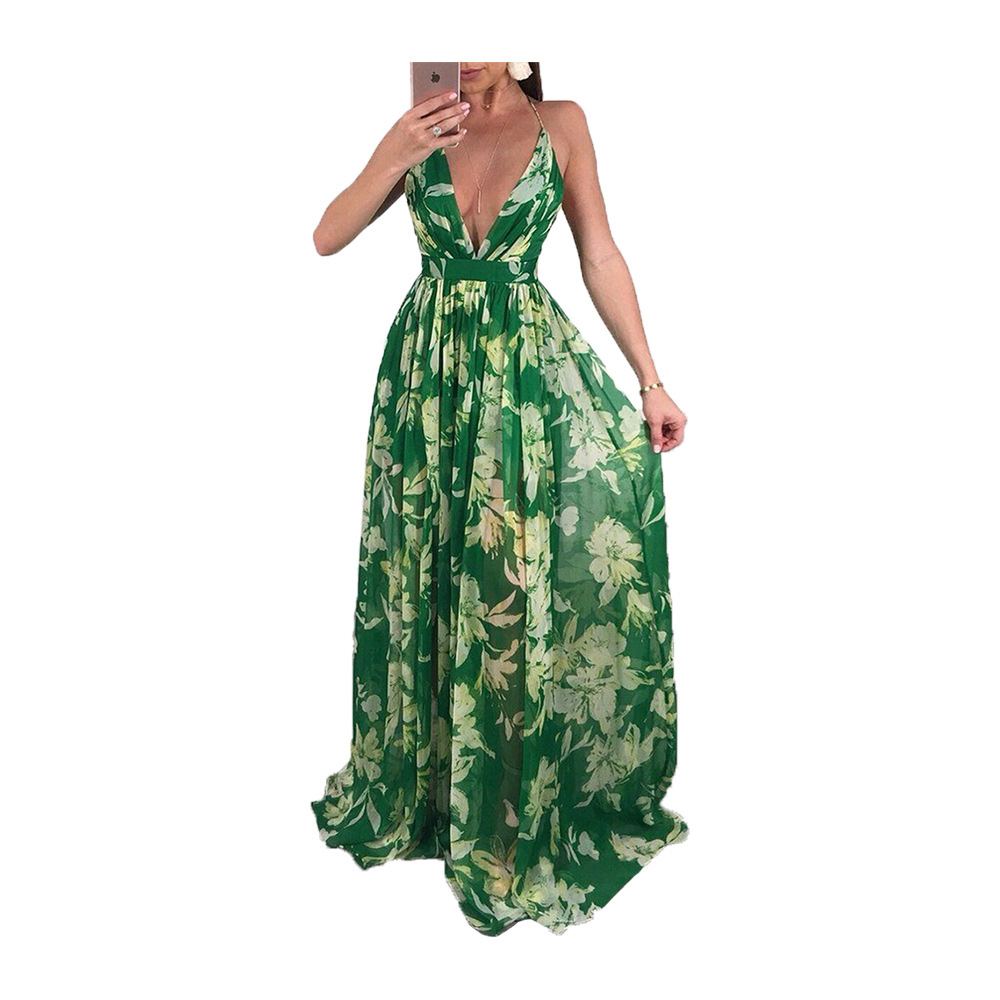 Sexy Deep V Backless Beach Maxi Dress Women Summer Chiffon Tunic