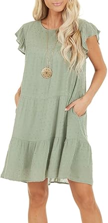 Etcyy Women S Summer Chiffon Mini Dress Ruffle Sleeve Polka Dot