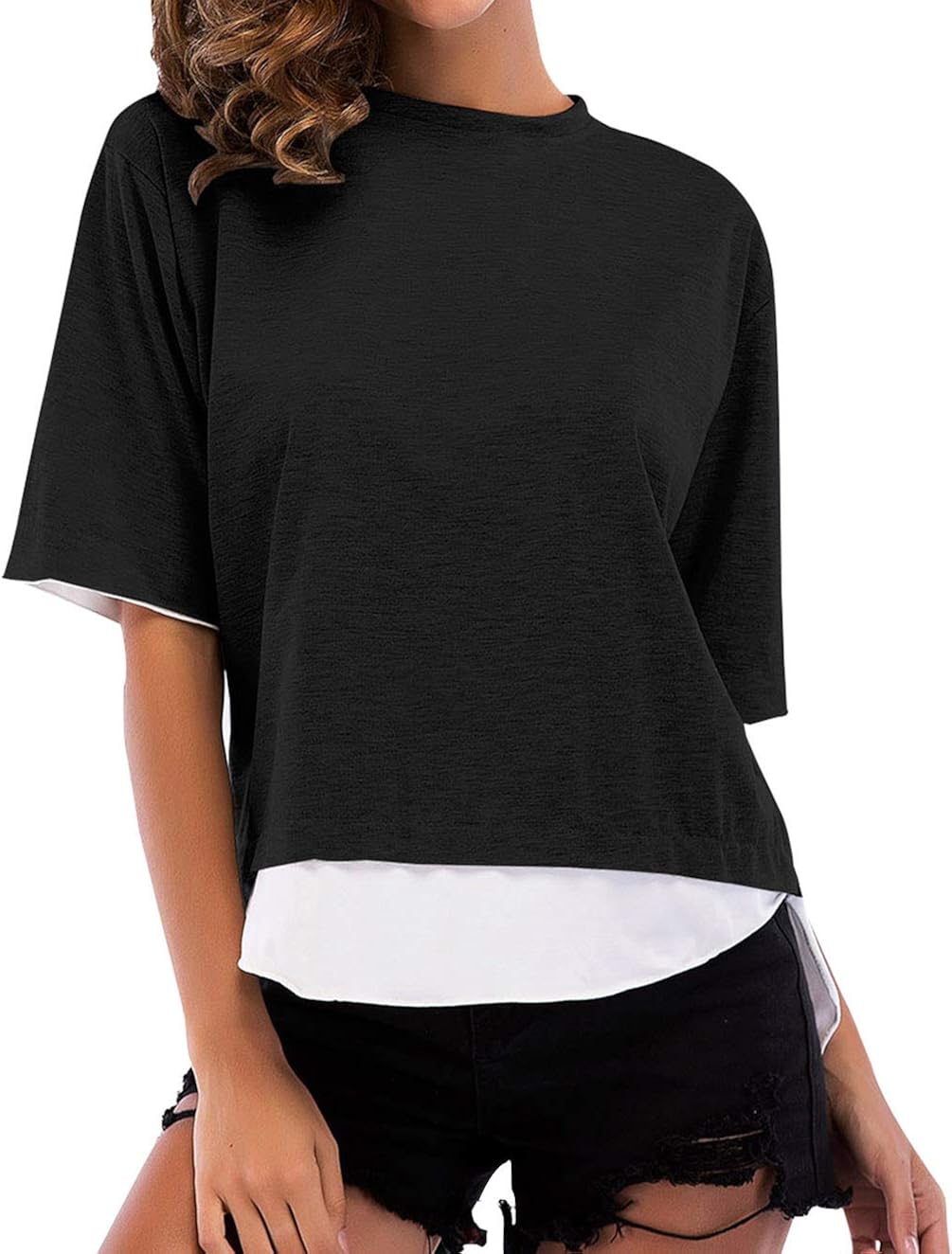 Amazon Com Women High Low Crop Top Solid Color Causal T Shirt