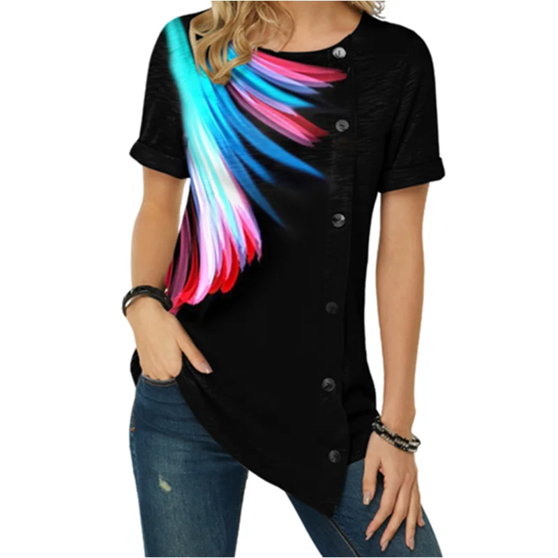 Colored Feathers Print Short T Shirts Women S New Summer Shirt