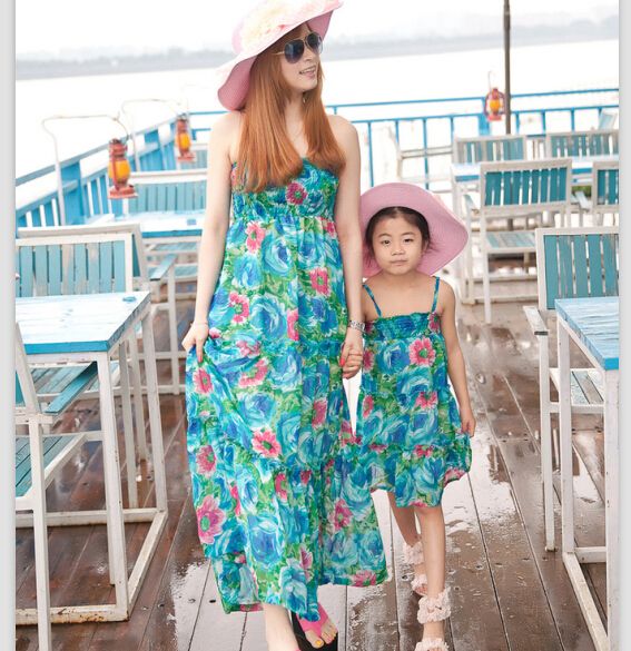 Hot Summer Family Dresses Clothing Spaghetti Strap Beach Bohemia