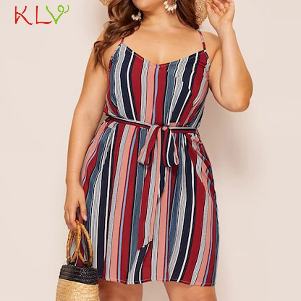 Plus Size Dress Striped Spaghetti Strap String Mini Dresses Sexy