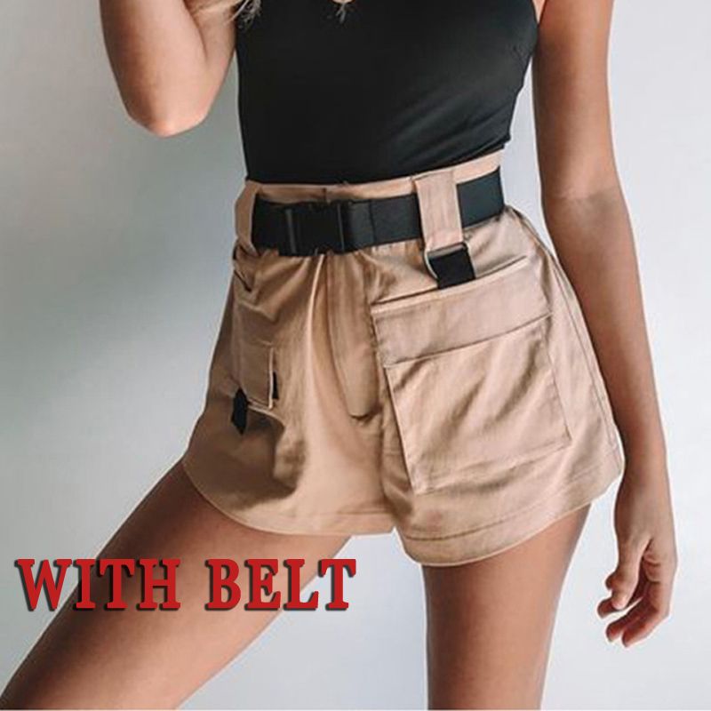 2020 Womens High Waist Wide Leg Cargo Shorts Black Khaki Sashes