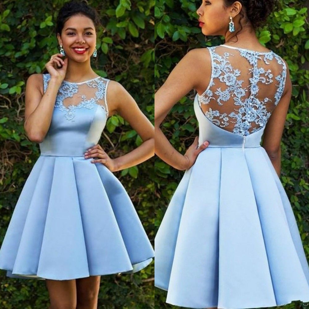 2020 New Short Sky Blue Cocktail Dresses Ball Gown Jewel Neck Lace