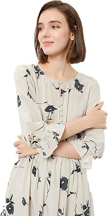Lpdjseg Women S Summer Silk Print Mid Waist Dress Seven Quarter