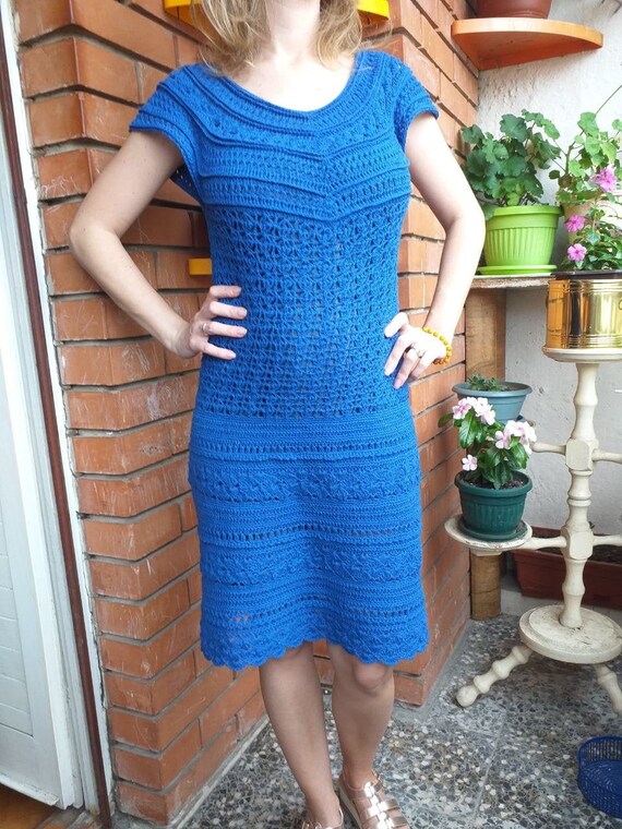 Summer Dress Blue Dress Sundress Cotton Dress Knitted Etsy