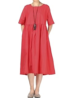 Mordenmiss Womens Linen Cotton Dress Summer Midi Dresses