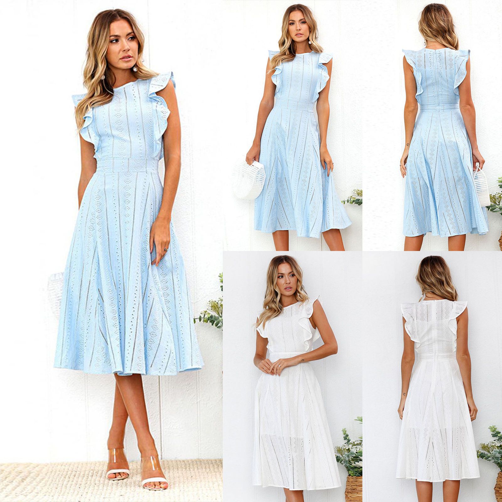 Womens Lace Party Cocktail Cotton Midi Dress Ladies Summer
