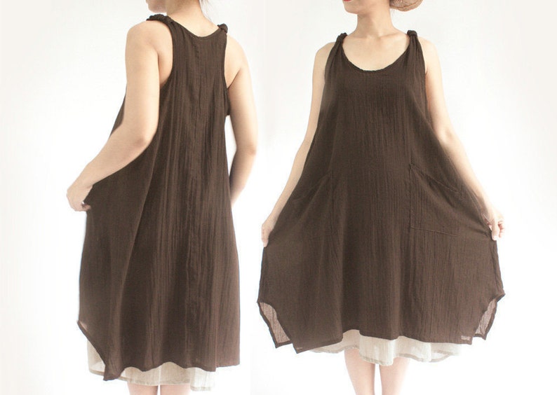 Summer Cotton Mini Dress Trapeze Brown Sleeveless Dress Etsy
