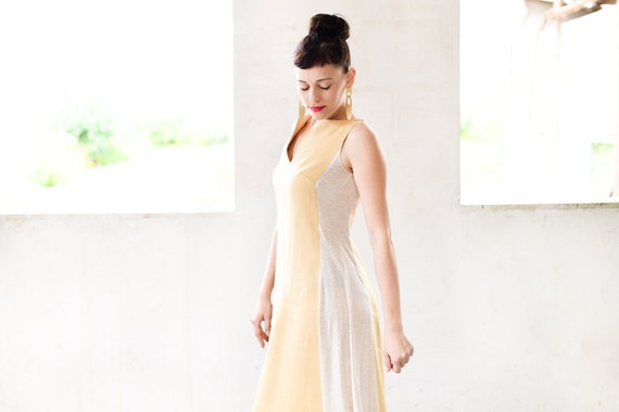 Cream Linen Dress Layered Lagenlook Long Sleeveless Loose