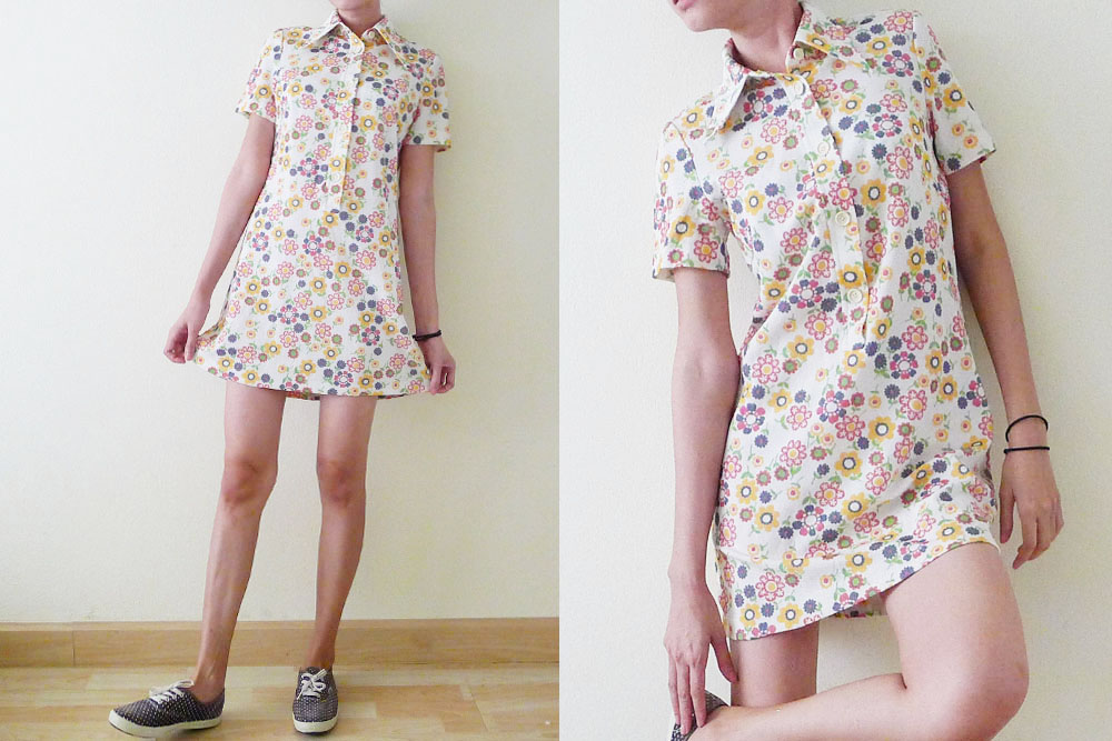 Vintage White Short Sleeve Mini Dress Shirt Dress Button Up